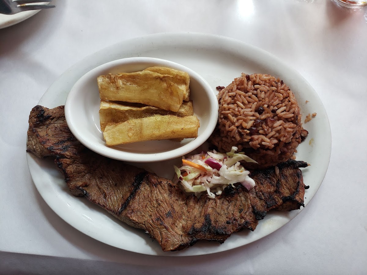 Fritanga is a definite new favorite of mine! I came in for lunch and was delighted by how quaint and lovely the spot was. They have a patio outside which is perfect for a nice weather day. I got an array of items and each one was absolutely fantastic. I think the number one thing I can say about each item I got was that you can tell it was made with passion and authenticity. The flavors are amazing, and you can tell a lot of care goes into the food. Items ordered - chancho con yuca: marinated pork served with cassava root. The spices on this are unreal. The pork is super tender and the cassava is cooked perfectly. - carne asada: definitely my favorite item I ordered. It comes with fried plantains and gallo pinto (mixed beans and rice). The serving size is generous and the meat is cooked phenomenally. - rum cake: a balance of sweet flavors with a solid base of moist cake. - sweet plantains: I got a side of these, as I've never had them before. I enjoyed them but they could have served as a dessert for me! Fritanga is a must try!!